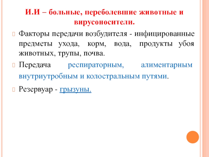 Слайд 6И.И – больные, переболевшие животные и вирусоносители.