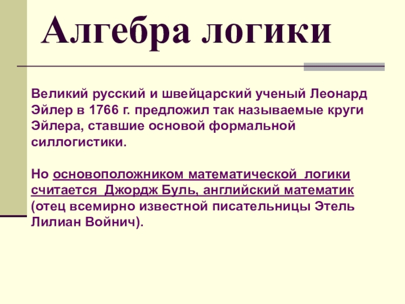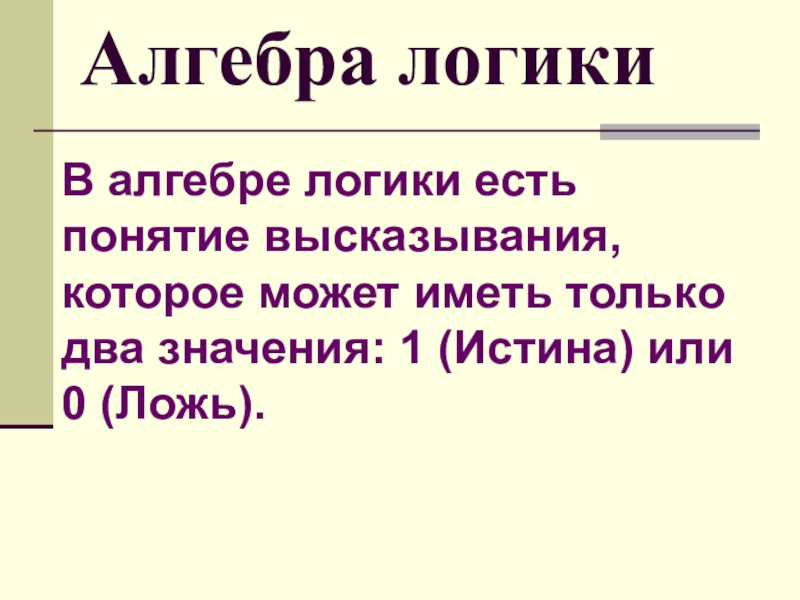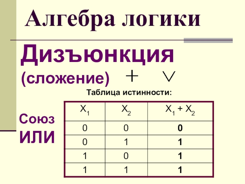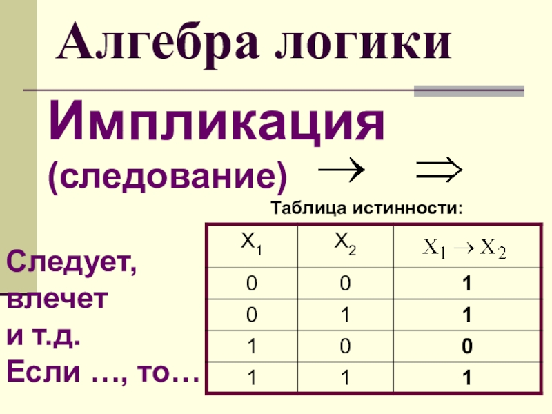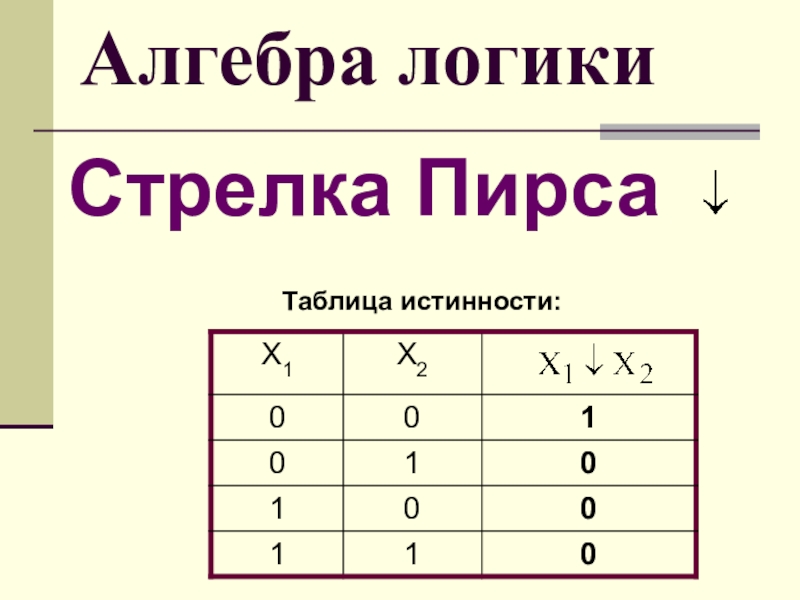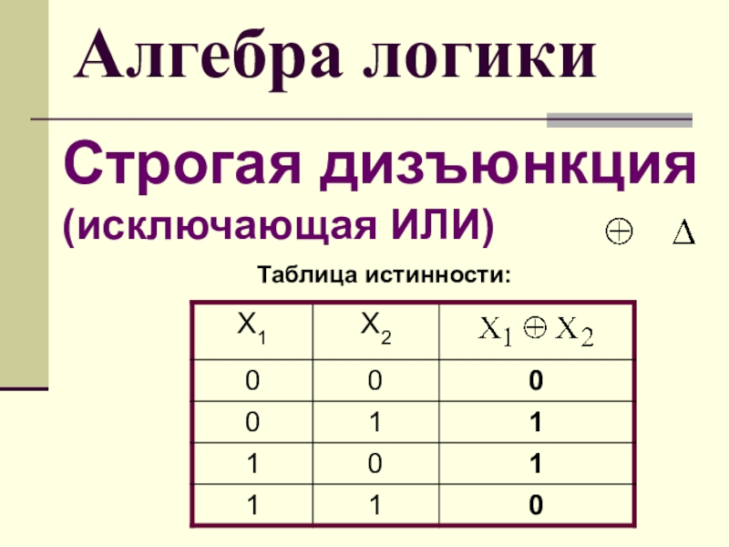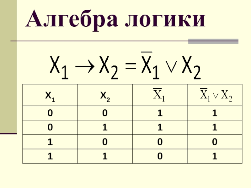Логическая функция – это составное высказывание, содержащее несколько простых мыслей, соединенных меж-ду собой с помощью логических операций. Обозначение – F(A,B,…) или F(X1,X2,…).