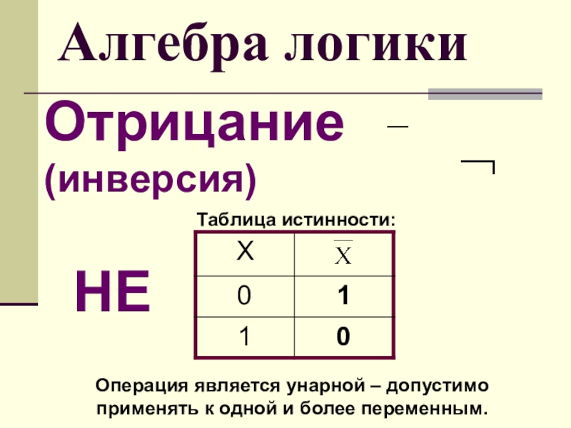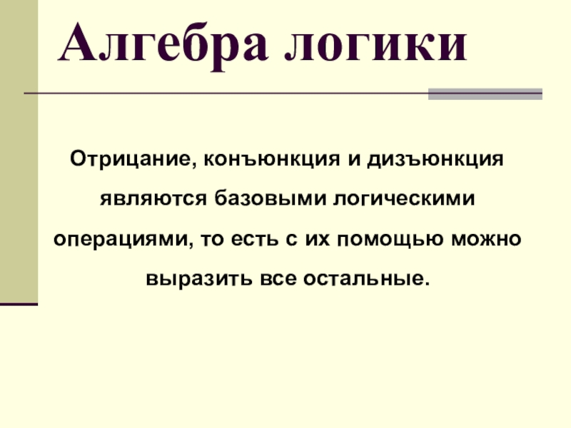 Логическая операция – это какое-либо логическое действие над логическими переменными.