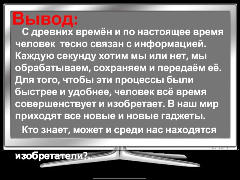 Это сайт презентаций, где можно хранить и обмениваться своими презентациями, докладами, проектами, шаблонами в формате PowerPoint с другими пользователями. Мы помогаем школьникам, студентам, учителям, преподавателям хранить и обмениваться учебными материалами.