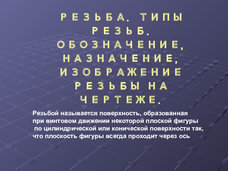 Слайд 3РЕЗЬБА. ТИПЫ РЕЗЬБ. ОБОЗНАЧЕНИЕ, НАЗНАЧЕНИЕ,