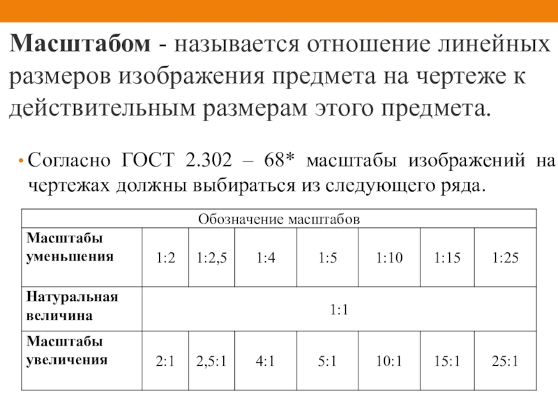 Согласно ГОСТ 2.302 – 68* масштабы изображений на чертежах должны выбираться из следующего ряда.