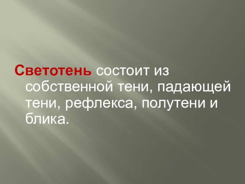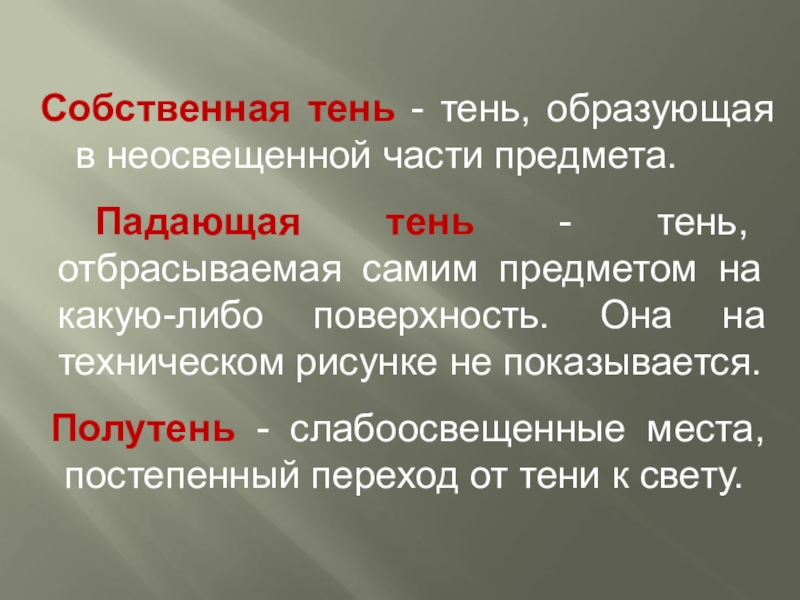 Полутень - слабоосвещенные места, постепенный переход от тени к свету.