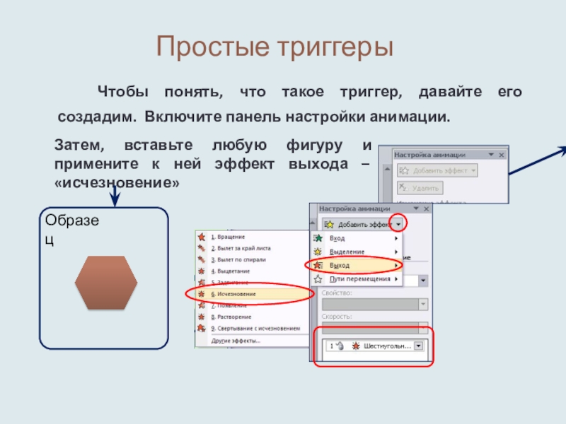 Затем, вставьте любую фигуру и примените к ней эффект выхода – «исчезновение»