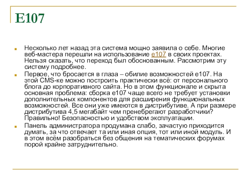 перешли на использование e107 в своих проектах. Нельзя сказать, что переход был обоснованным. Рассмотрим эту систему подробнее.
