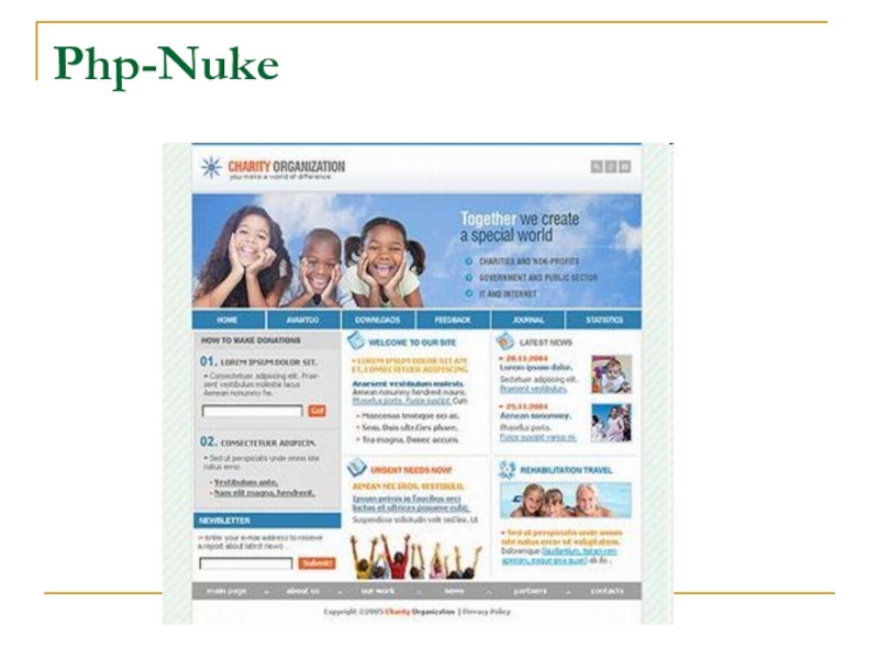 Автором Php-Nuke является Франсиско Бурси, система распространяется полностью бесплатно, но с соблюдением копирайтов. С исторической точки зрения, Php-Nuke стала пионером среди разработанных CMS. Только за это её и можно уважать, но сегодняшний день диктует абсолютно иные требования к безопасности и устойчивости системы. Nuke к этим изменениям приспосабливается слабо.