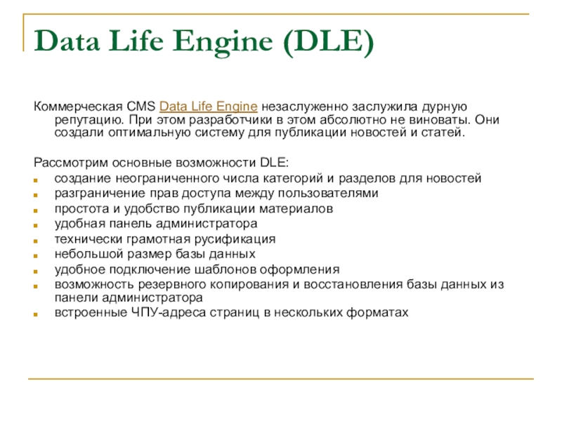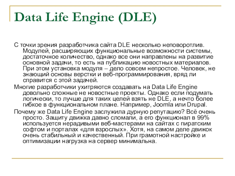 С точки зрения разработчика сайта DLE несколько неповоротлив.