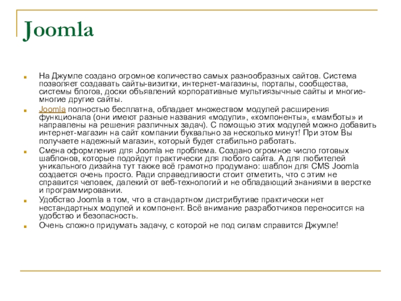На Джумле создано огромное количество самых разнообразных сайтов. Система позволяет создавать