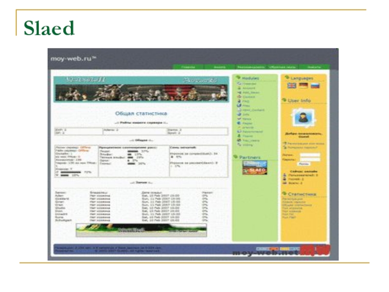 Оказывается, платная версия отличается от бесплатной версии Open Slaed не очень и сильно (а от аналогичных CMS не отличается и вовсе). Авторы в стоимость закладывают снятие копирайтов, расширение функционала за счет платных модулей, оптимизацию работы системы, а также смену графического оформления. В довесок ко всему этому богатству предлагается бесплатное обновление и техническая поддержка в течение одного года, а также возможность установки Slaed на четырех доменах. Ни кажется ли вам, что это маловато для того, чтобы пользователь выложил из своего кармана 200 евро? Особенно, если учитывать, что всё это можно получить бесплатно от других разработчиков.