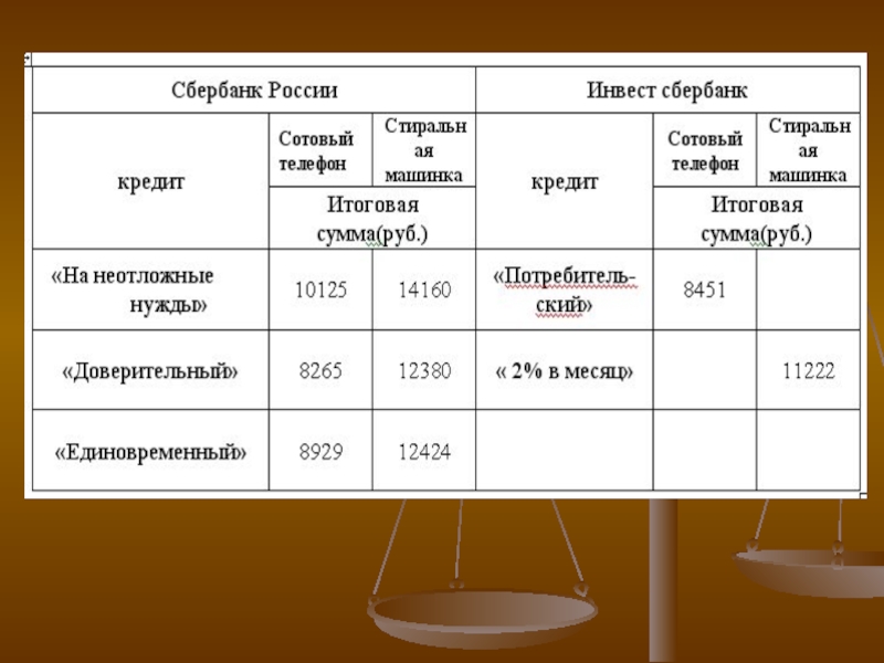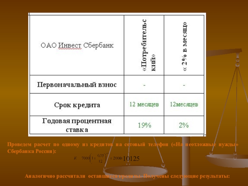 Аналогично рассчитали оставшиеся кредиты. Получены следующие результаты:
