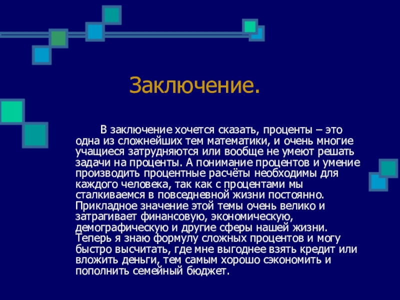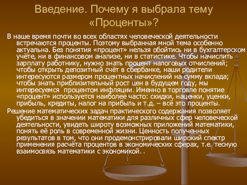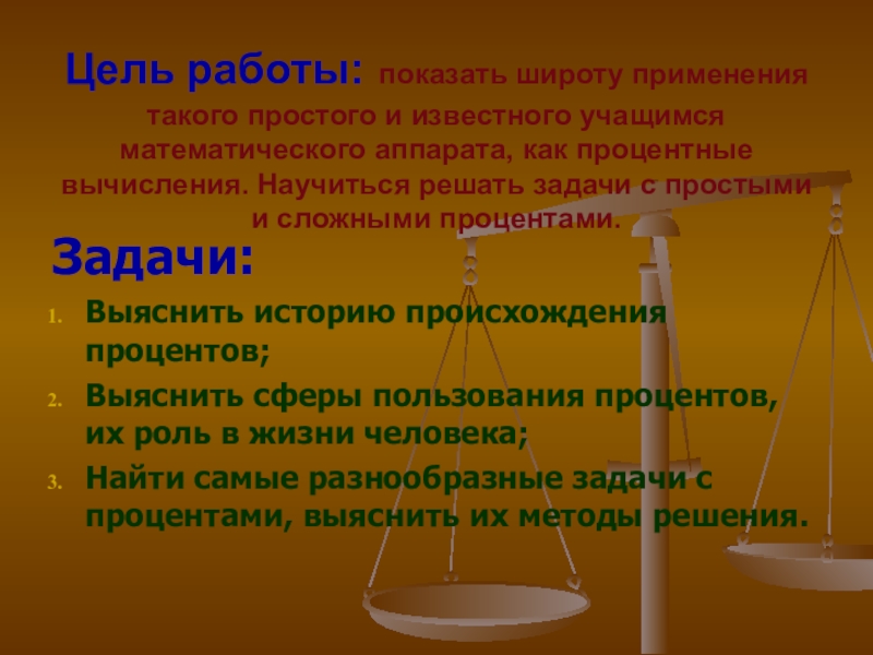 Выяснить сферы пользования процентов, их роль в жизни человека;