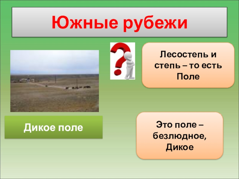 Южные рубежиДикое полеЛесостепь и степь – то есть ПолеЭто поле – безлюдное, Дикое