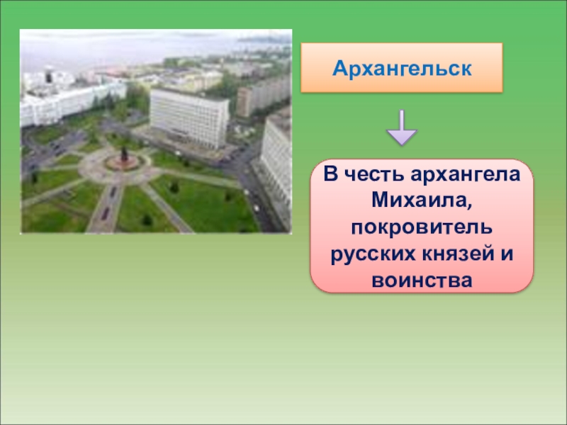 АрхангельскВ честь архангела Михаила,покровитель русских князей и воинства