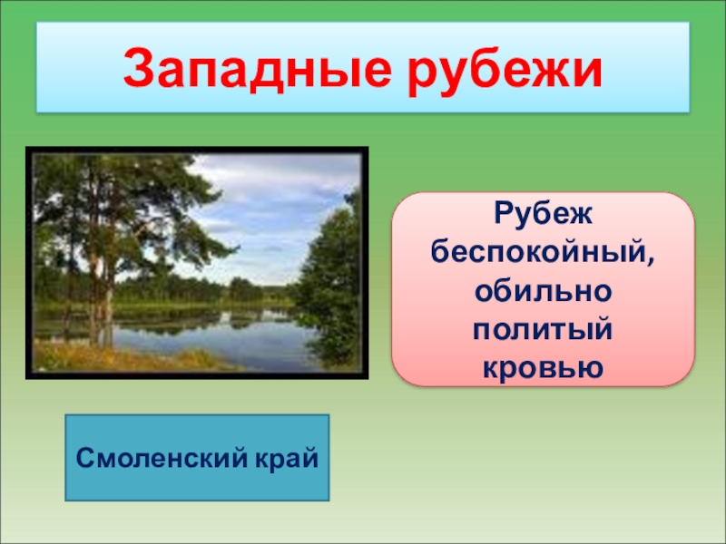 Западные рубежиСмоленский крайРубеж беспокойный, обильно политый кровью