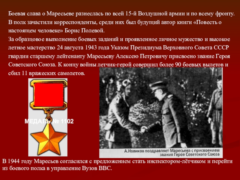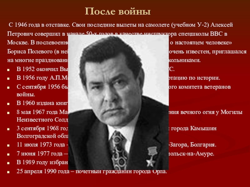Я думаю, неслучайно имя этого летчика стало легендой, неслучайно Борис Полевой посвятил ему