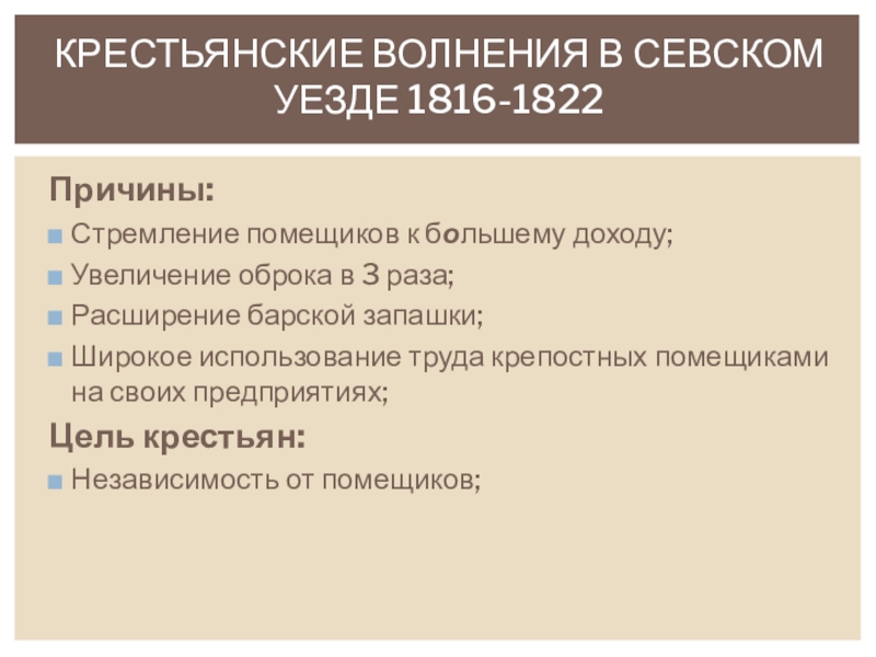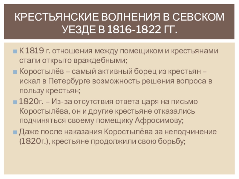 Крестьянские волнения в Севском уезде в 1816-1822 гг.