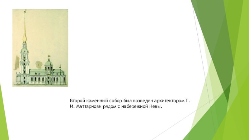 Слайд 3Второй каменный собор был возведен архитектором Г.И. Маттарнови рядом с набережной