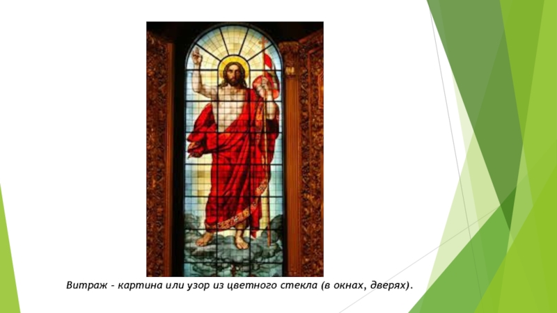 Слайд 19Витраж - картина или узор из цветного стекла (в окнах, дверях).