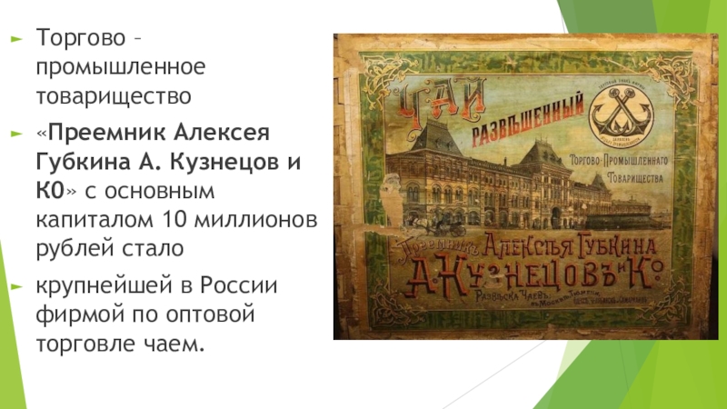 крупнейшей в России фирмой по оптовой торговле чаем.