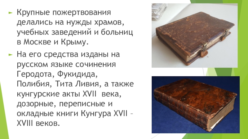 Слайд 8Крупные пожертвования делались на нужды храмов, учебных заведений и больниц в
