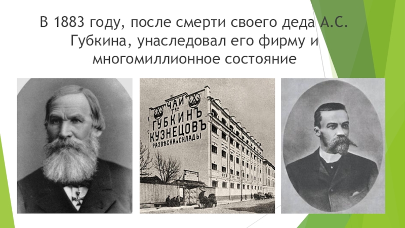 Слайд 3В 1883 году, после смерти своего деда А.С. Губкина, унаследовал его