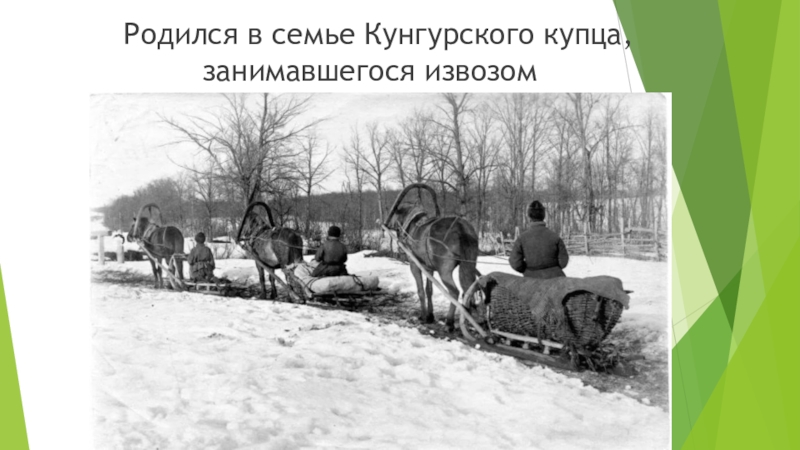 Слайд 2 Родился в семье Кунгурского купца, занимавшегося извозом