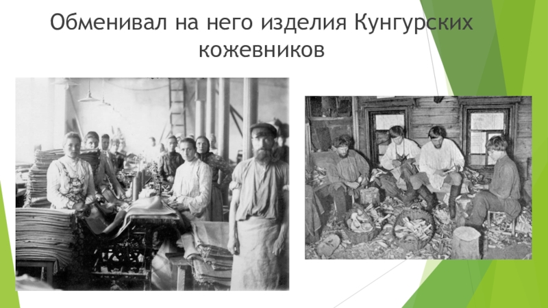 Слайд 4Обменивал на него изделия Кунгурских кожевников