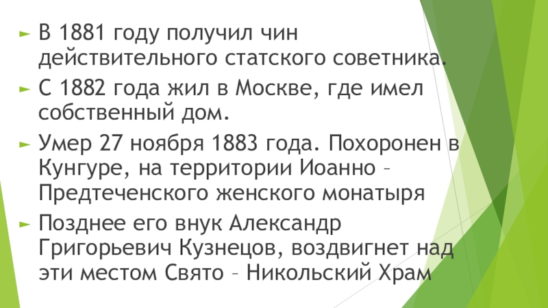 Слайд 16В 1881 году получил чин действительного статского советника.