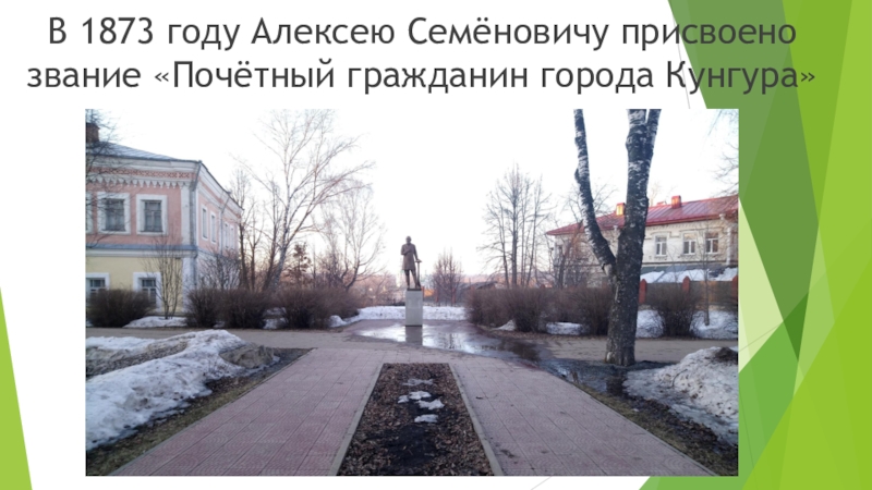 Слайд 15В 1873 году Алексею Семёновичу присвоено звание «Почётный гражданин города Кунгура»