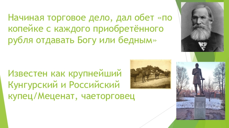 отдавать Богу или бедным» Известен как крупнейший Кунгурский и Российский купец/Меценат, чаеторговец