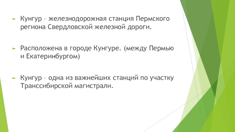 Слайд 8Кунгур – железнодорожная станция Пермского региона Свердловской железной дороги.
