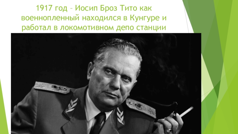 1917 год – Иосип Броз Тито как военнопленный находился в Кунгуре и работал в локомотивном депо станции