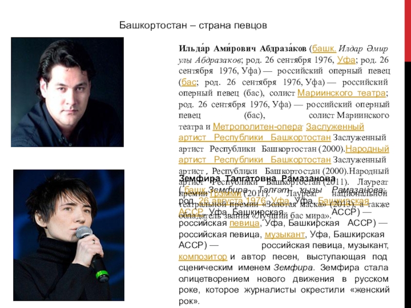 Слайд 20Земфи́ра Талга́товна Рамаза́нова