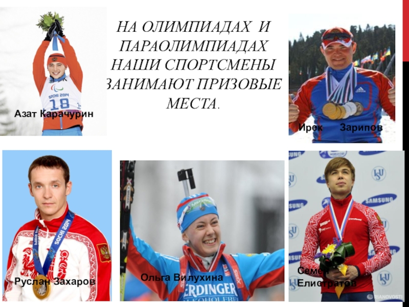 Слайд 21НА ОЛИМПИАДАХ И ПАРАОЛИМПИАДАХ НАШИ СПОРТСМЕНЫ ЗАНИМАЮТ ПРИЗОВЫЕ МЕСТА.