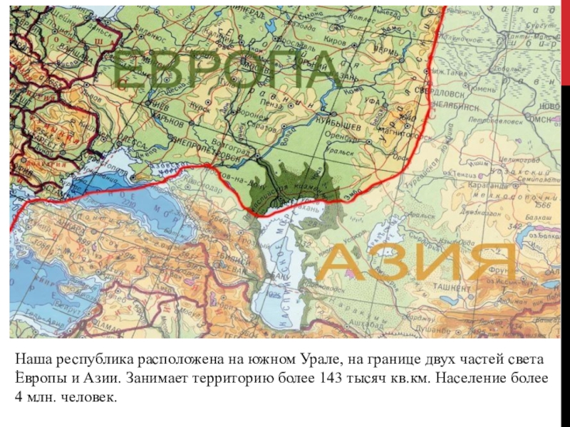Европы и Азии. Занимает территорию более 143 тысяч кв.км. Население более 4 млн. человек.