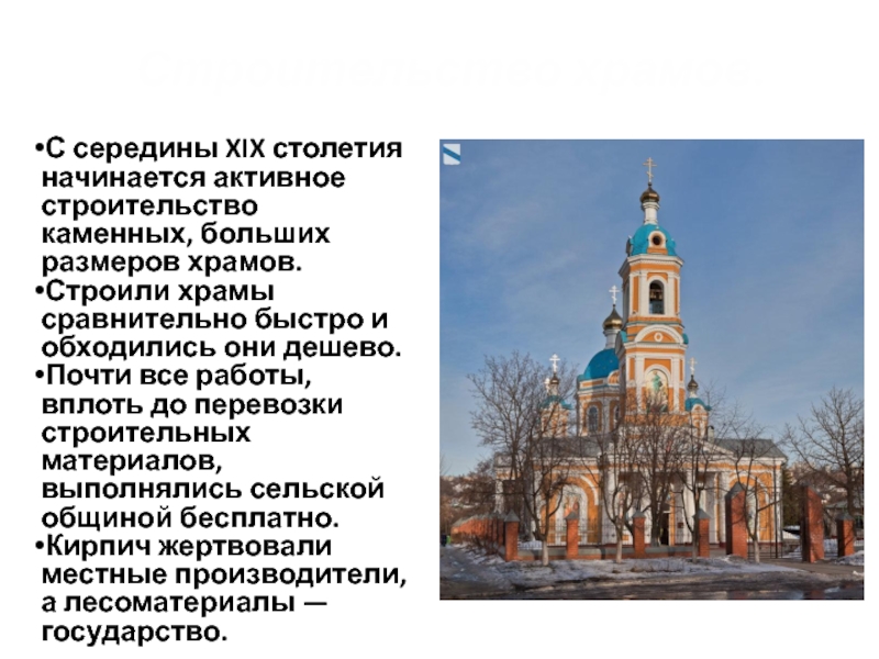 Слайд 23В пореформенный период появился новый тип церкви — домовая церковь, которая