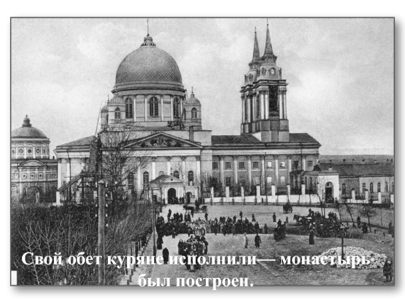 Слайд 6Свой обет куряне исполнили— монастырь был построен.