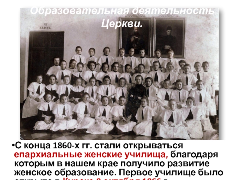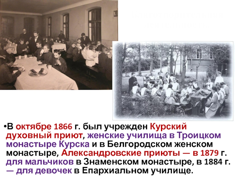 Слайд 18В октябре 1866 г. был учрежден Курский духовный приют, женские училища