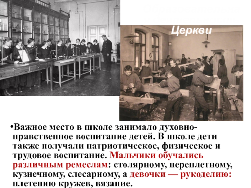 Слайд 16Важное место в школе занимало духовно-нравственное воспитание детей. В школе дети