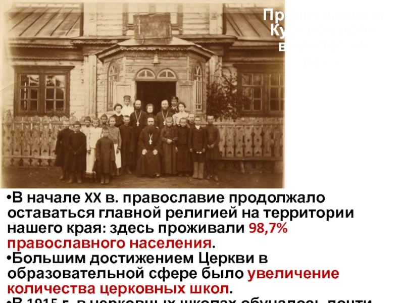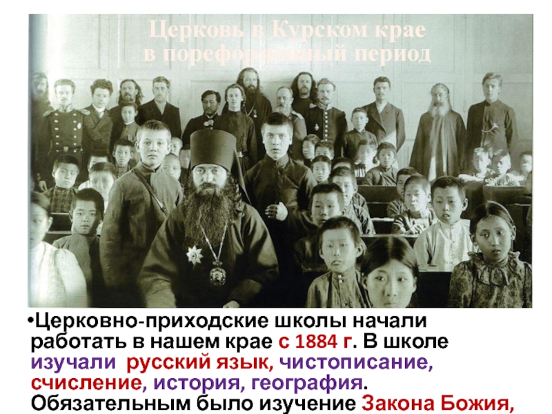 Слайд 15Церковно-приходские школы начали работать в нашем крае с 1884 г. В