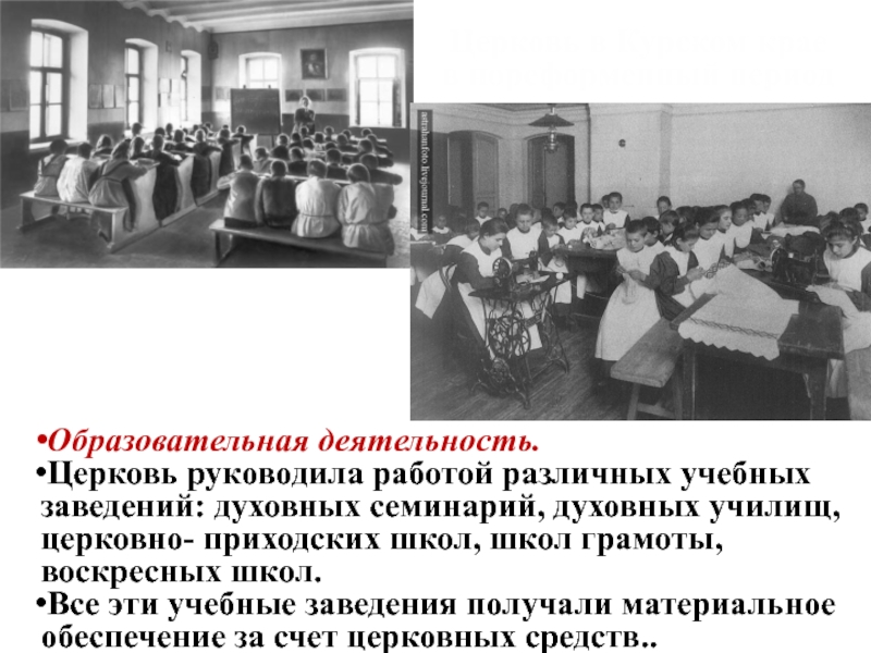 Все эти учебные заведения получали материальное обеспечение за счет церковных средств..