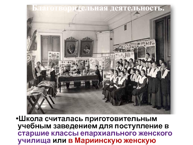 Слайд 21Школа считалась приготовительным учебным заведением для поступление в старшие классы епархиального