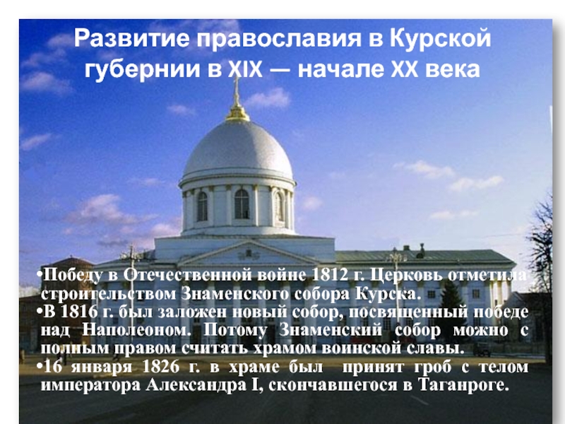 в Отечественной войне 1812 г. Церковь отметила строительством Знаменского собора Курска.