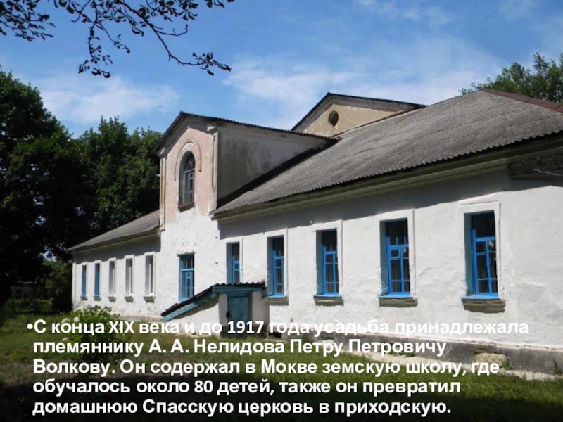 Слайд 15С конца XIX века и до 1917 года усадьба принадлежала племяннику