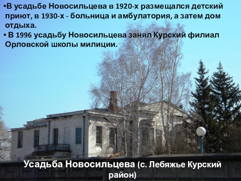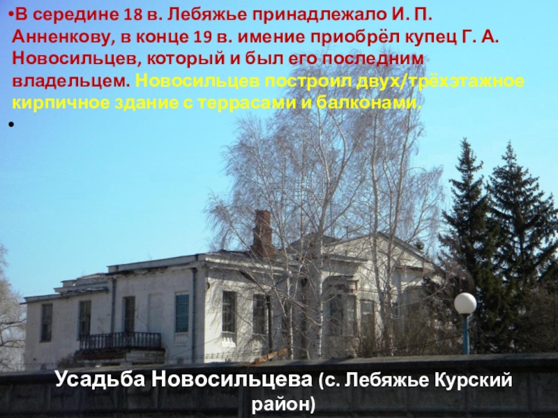 Слайд 18Усадьба Новосильцева (с. Лебяжье Курский район)