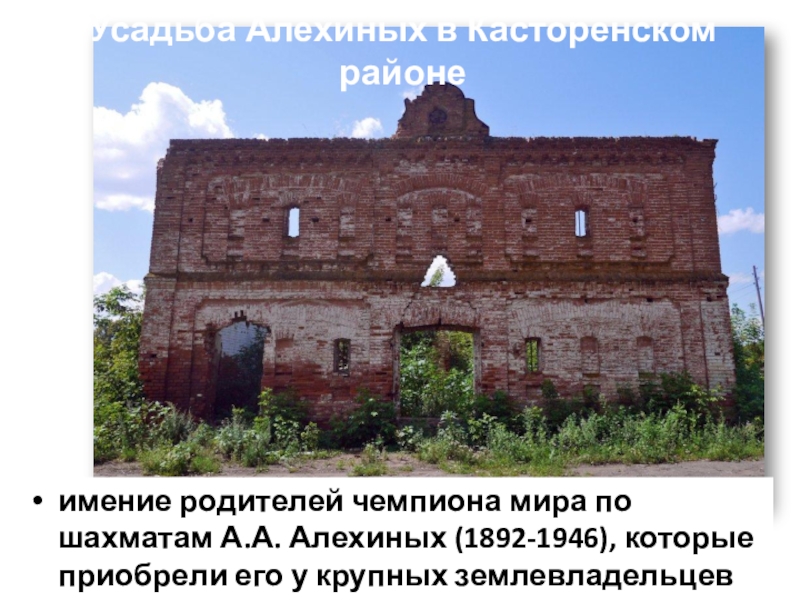 Слайд 20Усадьба Алехиных в Касторенском районе