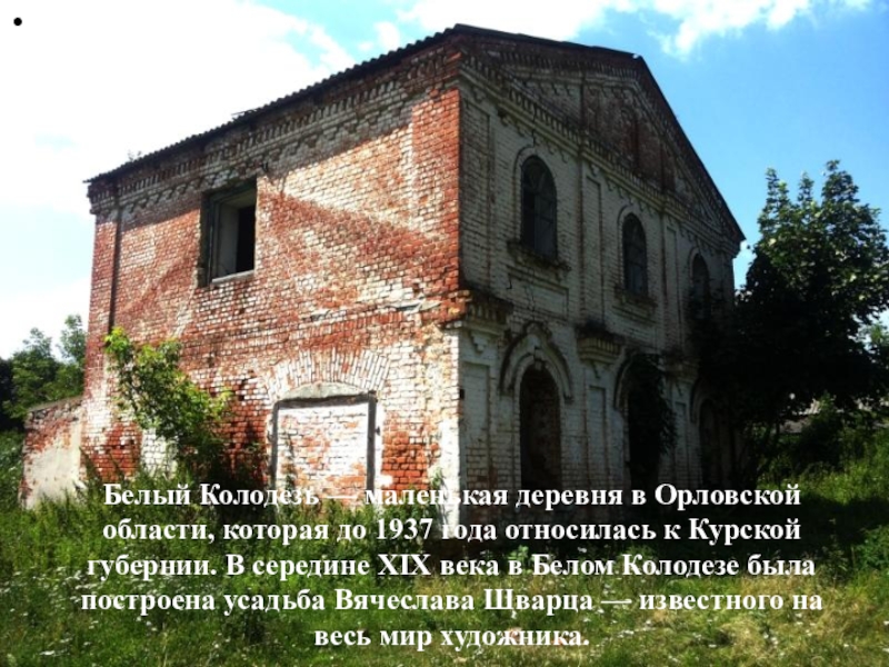 Слайд 19Белый Колодезь — маленькая деревня в Орловской области, которая до 1937