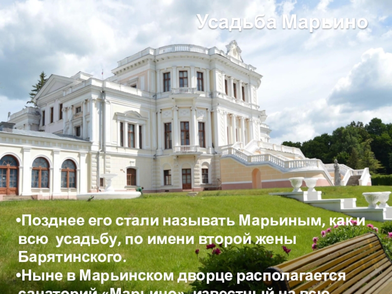 Ныне в Марьинском дворце располагается санаторий «Марьино», известный на всю страну.
