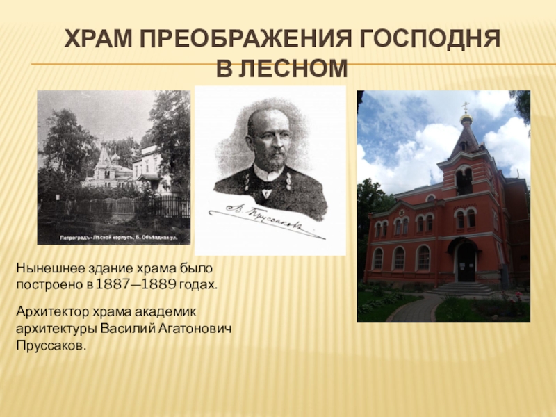 Архитектор храма академик архитектуры Василий Агатонович Пруссаков.