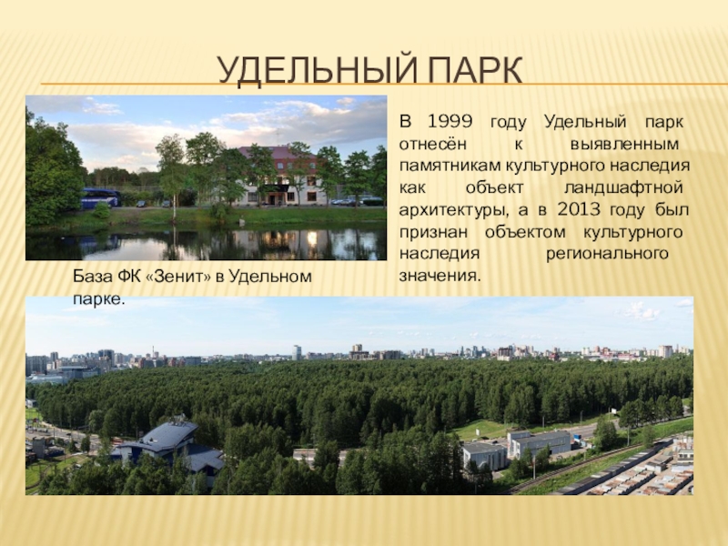 В 1999 году Удельный парк отнесён к выявленным памятникам культурного